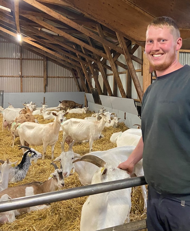 Tobias Christensen von Nørgaards Geder in Videbæk betreibt seinen Bio-Milchhof mit 260 Milchziegen auf 40 Hektar Weideland. Der Landwirt meint, dass Ziegenfleisch in Bezug auf die Gesundheit mit Hühnerfleisch konkurrieren kann, weil es mehr Eiweiß, weniger Fett und mehr Eisen enthält. Zudem unterscheiden sich die Proteine in der Ziegenmilch von denen der Kuhmilch, weshalb viele Menschen mit Laktose-Intoleranz Ziegenmilch gut vertragen.