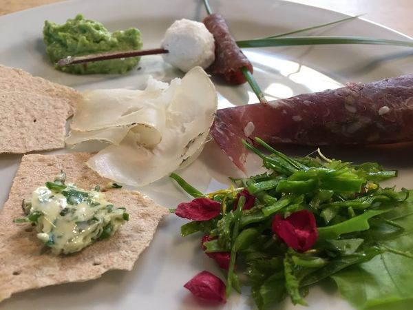Gårdbutikken har også en lille café med lokal mad, egne råvarer og hjemmebagt brød af økologisk mel. Der er skiftende workshops og udstillinger med kunstnere og håndværkere, som tager udgangspunkt i den vestjyske natur og de råmaterialer, der er omkring hyrdegården.