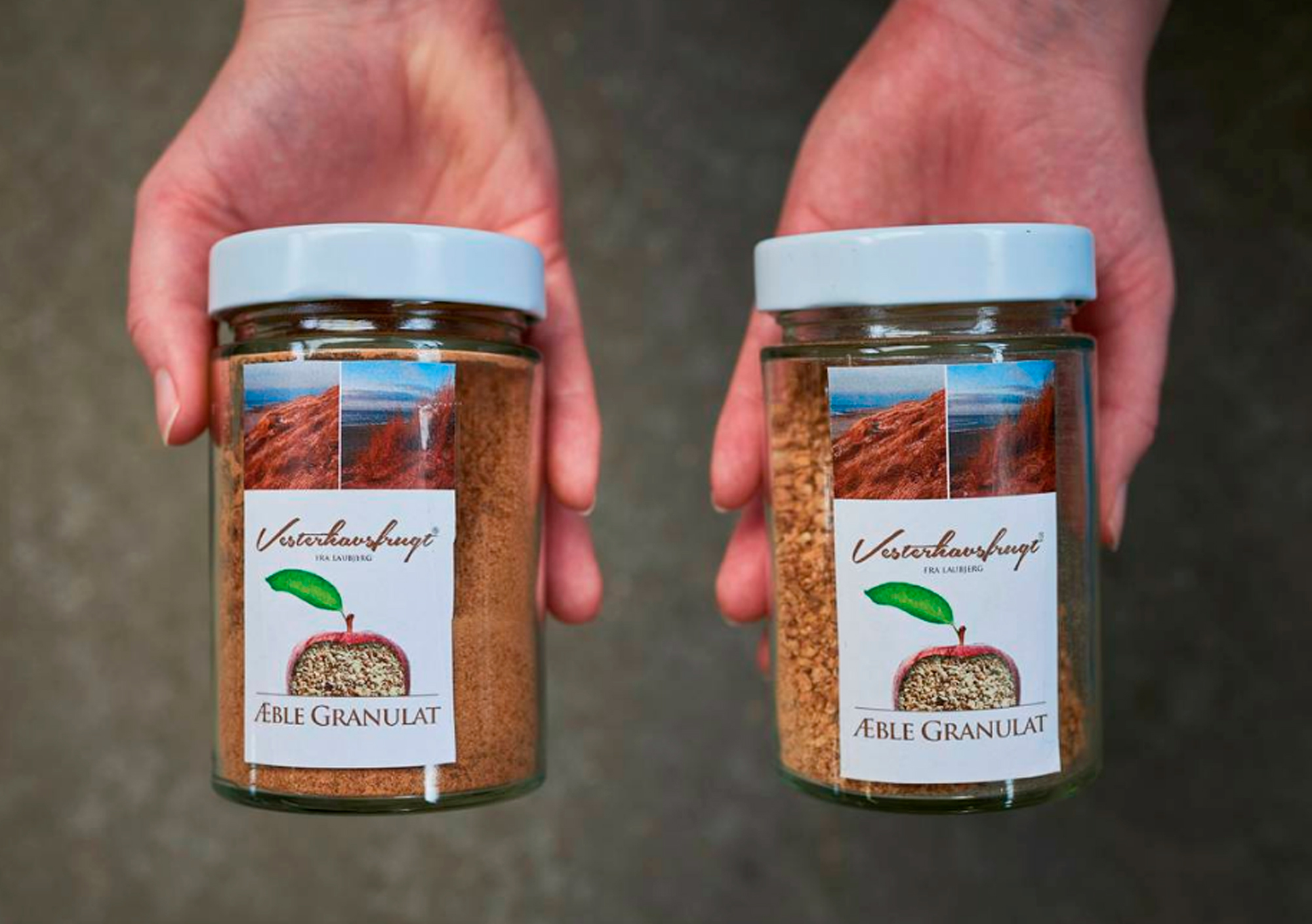 100 g æblegranulat puttes i en skål og overhældes med 1,5 dl kogende vand