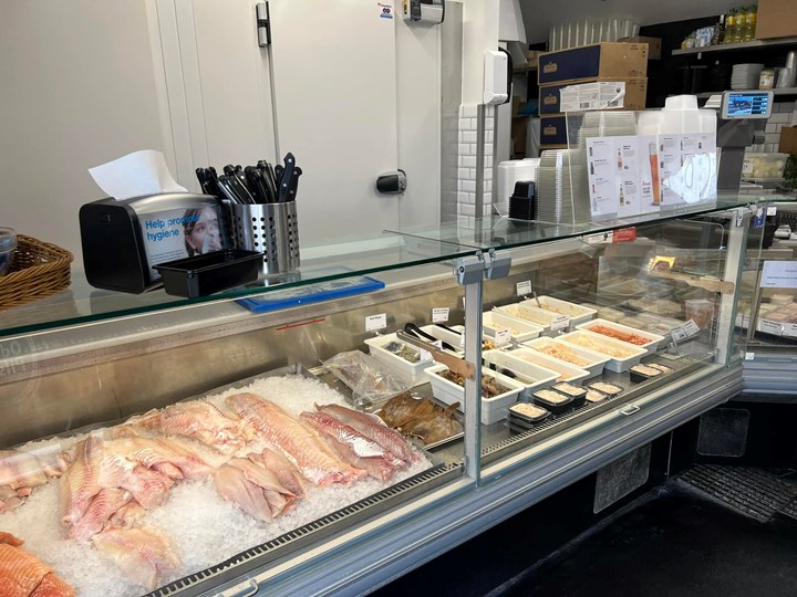 Der er siddepladser udenfor fiskehuset og i et tilstødende lokale, hvor du kan nyde vores forskellige lækre fiskeretter.
