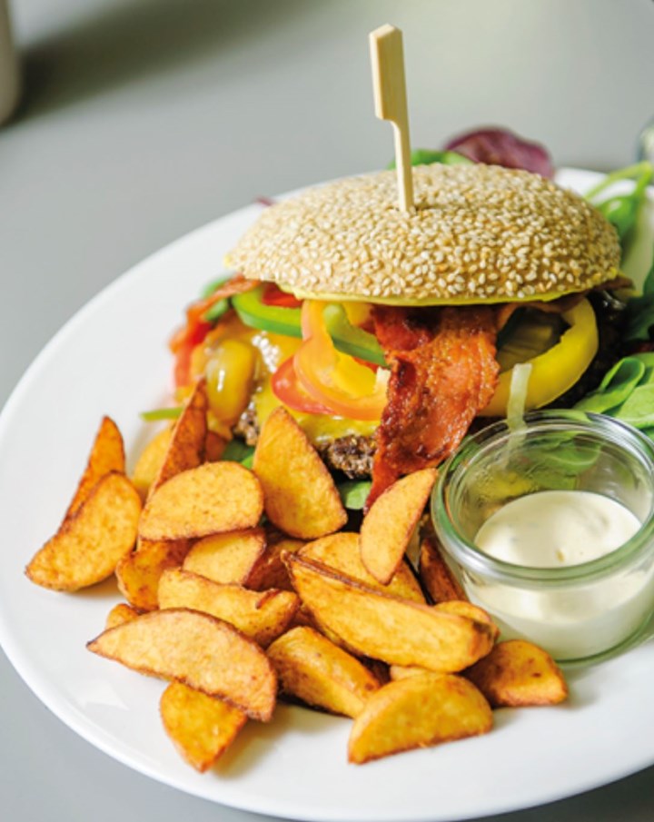 Café B ligger i Ringkøbing-Skjern Kulturcenter, og her er et dejligt menukort med caféklassikere – tilsat lidt snaks. Caféen byder nemlig på saftige burgere, sprøde pomfritter, nachos, franske hotdogs og meget mere. Og så er det meste af tilbehøret lavet helt fra bunden.