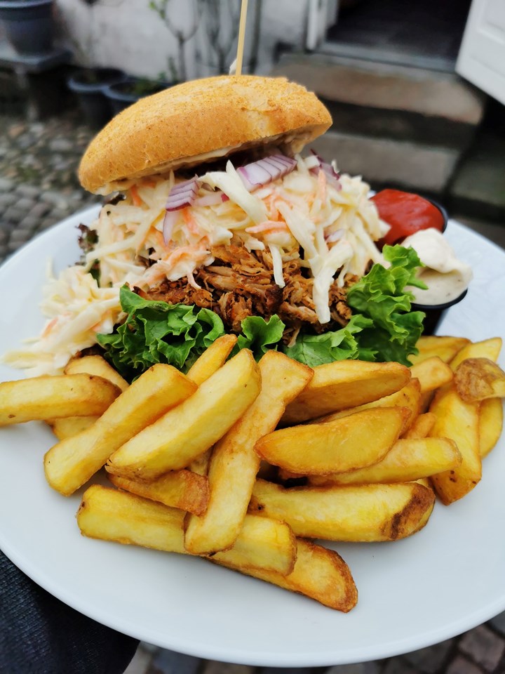 Om sommeren kan du nyde maden i caféens helt særlige charmerende gårdhave, som er en lille oase i Ringkøbing. Du kan også spise på byens torv - og du vil opleve et imødekommende personale som vil gøre alt for at give dig en god oplevelse.