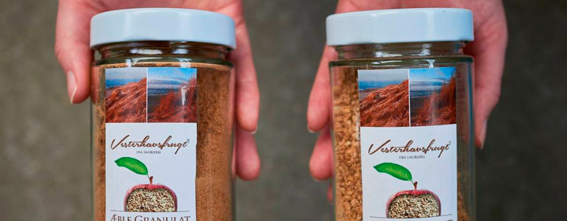 100 g æblegranulat puttes i en skål og overhældes med 1,5 dl kogende vand